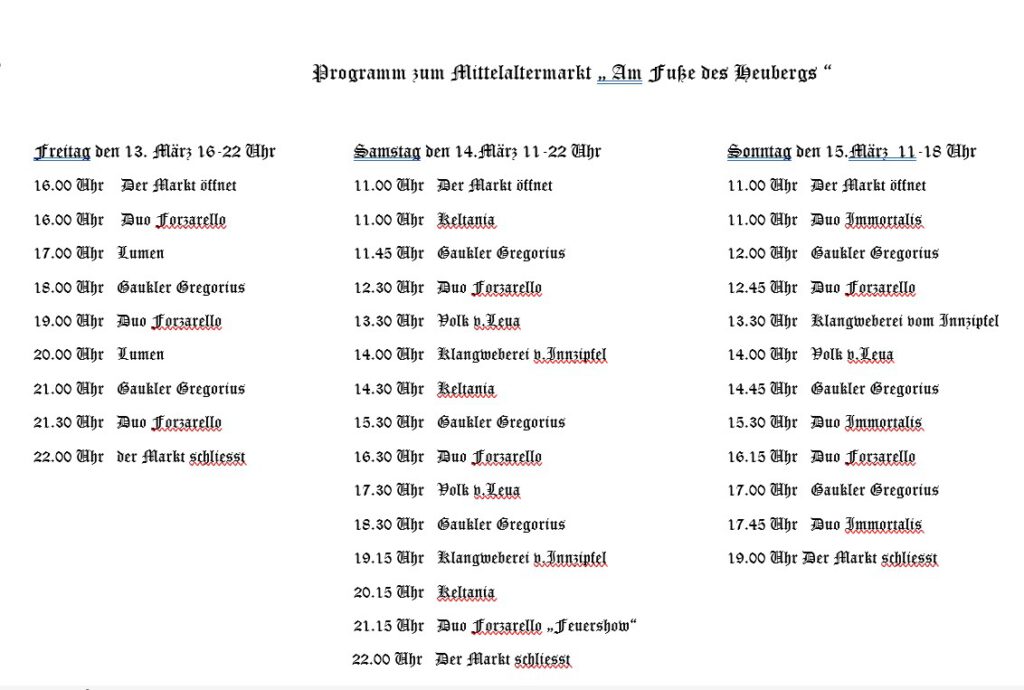 Mittelalterlicher Lenzmarkt „Am Fuße des Heubergs“ vom 13.-15.März 2026